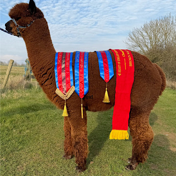 And if that's not enough to excite your interest we have a number of young females pregnant this season to our Champion Dark Brown Son of LAVENDER PARK Tulley - TOFT TIMOGEN (SDB) who is rapidly becoming a legend in his production of superfine champion alpacas throughout the UK. TOFT TIMOGEN is available for service from the beginning of May 2025