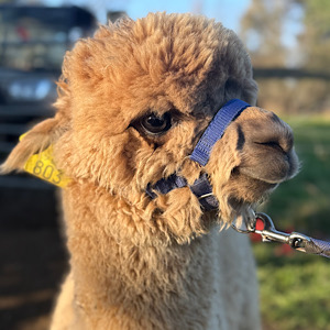 TOFT ELMORE is a very well grown young male who is son of our Champion male HERTS BIG BOPPER. He has a very striking presence like his father, with an amenable gentle nature who will make an excellent Pet Alpaca, Walking Alpaca, Therapy Alpaca or Guard Alpaca and will probably perform all those duties admirably with the right owner as well as provide excellent fibre for many years to come