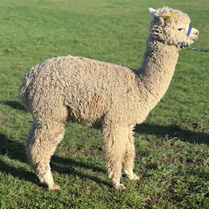 TOFT VICENZO is a fully halter trained compact well proportioned young Solid Light Fawn male with excellent conformation exhibiting a superfine, very uniform very conisistent fleece right our to his extremities. As you can see from the image above he has small dark fawn spot on is flank midside which prevents him from being considered as a stud male but this will in no way impede to use of his excellent fleece being used to make superior yarn and alpaca product as this dark spot can easily be removed at shearing.