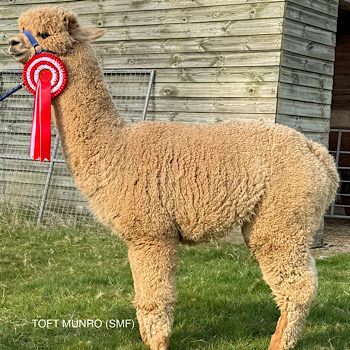 TOFT MUNRO has already made his mark in the showring with a 1st in class at the Heart of England Alpaca Fiesta in 2024 and 4th at the BAS Nationals, two of the most competitive shows in Europe. He's topped this in 2025 with a first and Reserve Champion at the Heart of England Fiesta 2025
