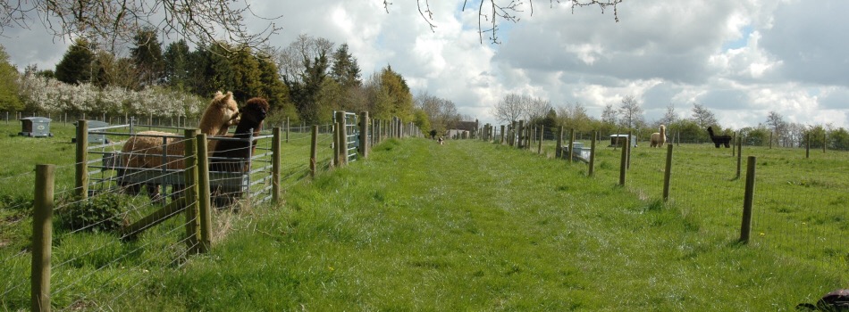 We have two public footpaths and a bridleway which go through our paddocks. When we set up the majority of the alpaca farm, a decade ago, we double fenced these rights of way to enable vistors and the general public to walk safely and enjoy our alpacas separated from our herd. This naturally created further separation between groups of alpacas within the main five blocks.