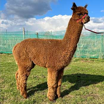 Toft Chinua bears all the hallmarks of his father. As you can see from his photo above he is very colour consistent and his uniformity of micron are also impressive throughout the blanket and out to the extremeties. Like his father he has a very even gentle temprament. He is fully halter trained and will make a terrific Fibre Alpaca in addtion to any other reponsibilities he may be given as regards, guarding, walking or therapy work.