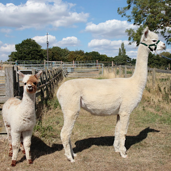 This cria was the result of a mating to The Big Bopper and was the first real appaloosa we have ever had at Toft - that's alpacas! The fleece on the cria is absolutely stunning- if it had been all white or dark fawn Arlene would have been heading up the show team in 2023... Arlene is already heading off to pastures new in Europe during 2024.