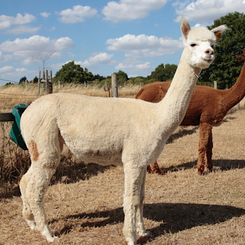 TOFT MOAZAGOATL is female at the forefront of the TOFT Alpacas Breeding over the past 28 years. As you can see she has a dark fawn spot on her back right thigh but she does not carry any other dark fibres in her fleece. In 2024 she gave birth to beautful Solid Medium Fawn Male TOFT MARANO.